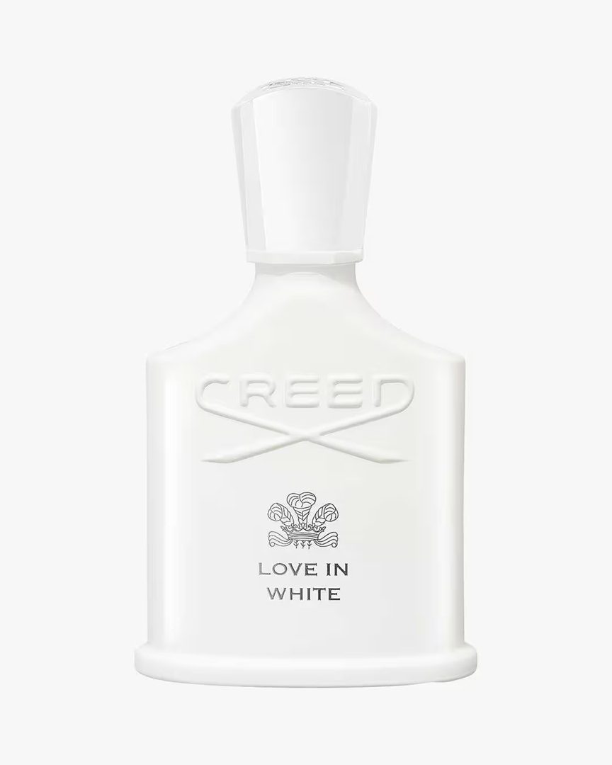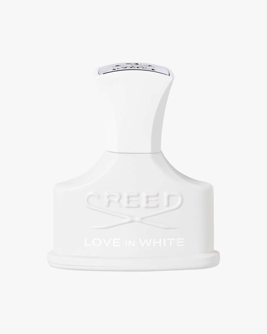 Love in White er blomstret og frisk og et enestående eksempel på en ekte grønn duft. Delikat sjasmin smelter sammen med pudret iris, som kompenserer for en delikat roseblanding, som er pepret mot saftige appelsinnoter, som finnes i kjernen av denne duften. Virvler av sedertre forankrer basen, som forsterker duften av magnolia-blader. Som en sensuell hyllest til kjærligheten, minner denne duften om en delikat vårbris.