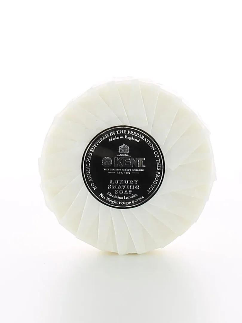 Såpen leveres som en 120g tablet med en diameter på 80 mm, og passer perfekt i Kent sine barberingsskåler i tre.